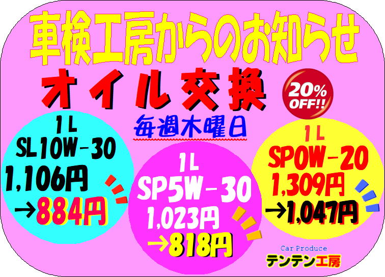 ★オイル交換 毎週木曜日(20%OFF)
