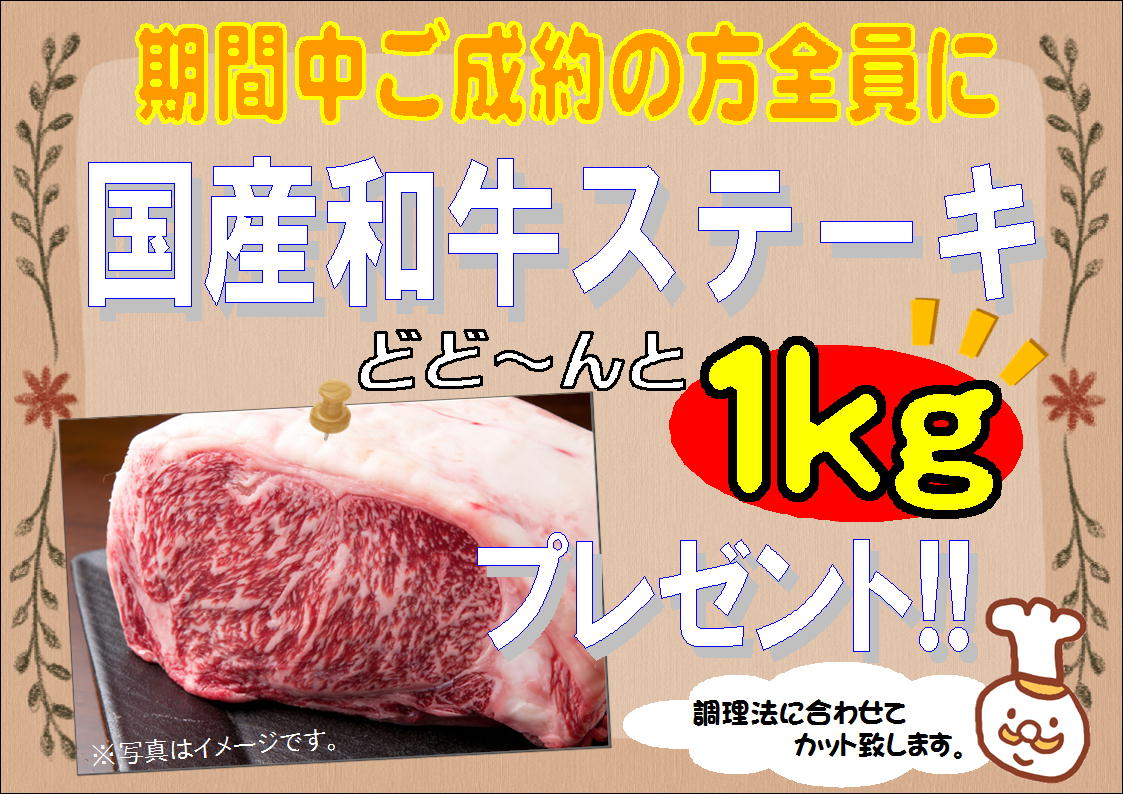 国産和牛1kgをプレゼント