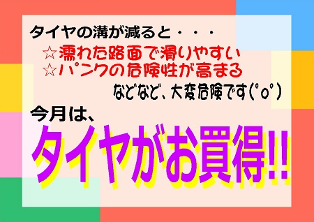 今月はタイヤがお買い得