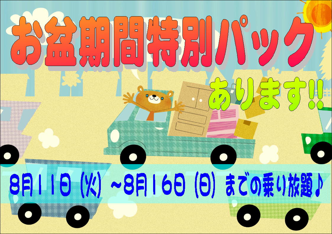 8月11日(火)~8月16日(日)までの乗り放題パック