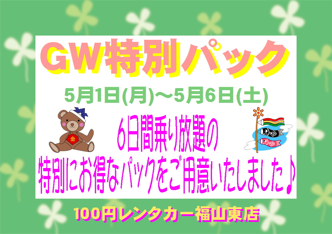 100円レンタカー福山東店よりお知らせです