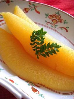 蒲鉾と同様、白身魚を原料とし、卵を混ぜることで黄金色になることから