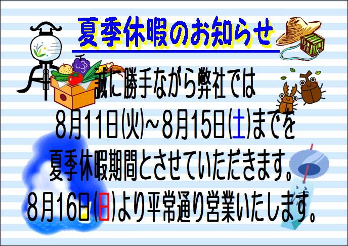 夏季休暇期間とさせていただきます。